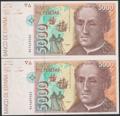 5000 Pesetas. 12 de Octubre de 1992. Pareja correlativa. Serie 9A, numeración especial. (Edifil 2017: 484b). SC.