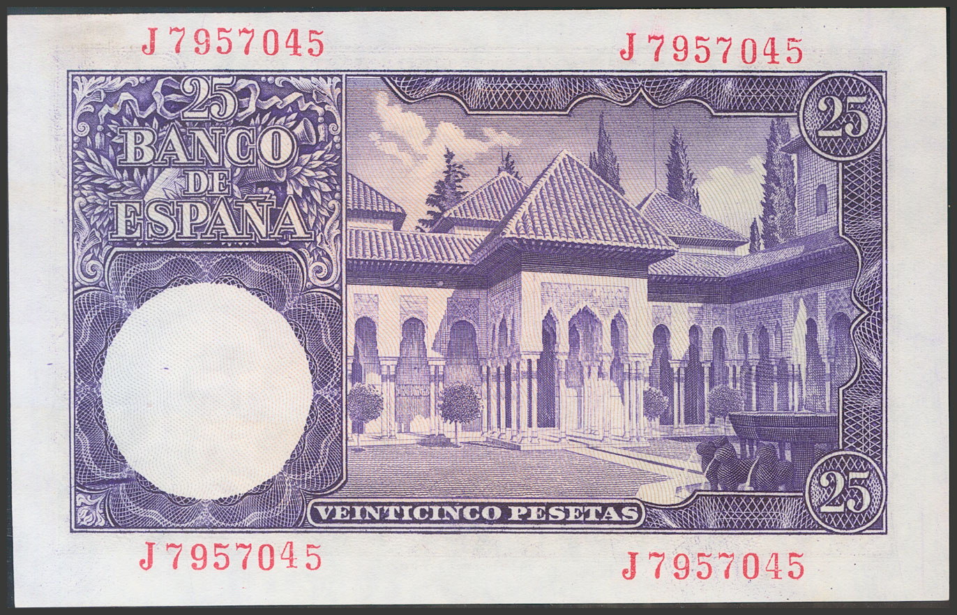 25 Pesetas. 22 de Julio de 1954. Serie J. (Edifil 2017: 467a). Conserva todo su apresto original. SC-.