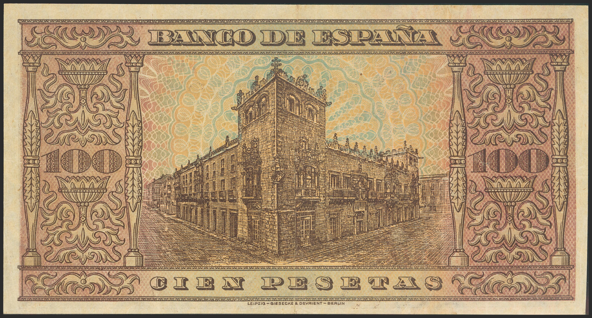 100 Pesetas. 20 de Mayo de 1938. Serie F. (Edifil 2021: 432a). Conserva parte del apresto original. EBC+.