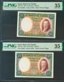 25 Pesetas. 25 de Abril de 1931. Pareja correlativa. Sin serie. (Edifil 2021: 358, Pick: 81). Inusual. EBC-. Encapsulado PMG35, ambos.