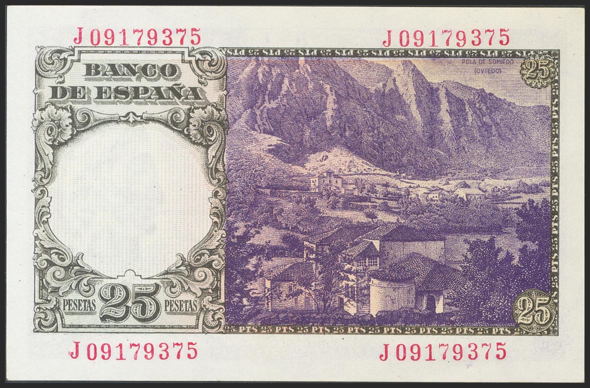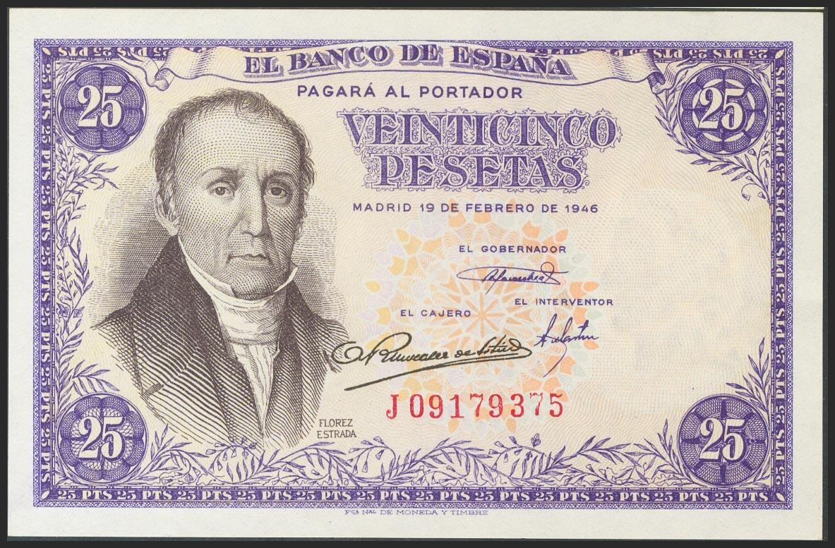 25 Pesetas. 19 de Febrero de 1946. Serie J. (Edifil 2021: 450a). Apresto original. SC-.