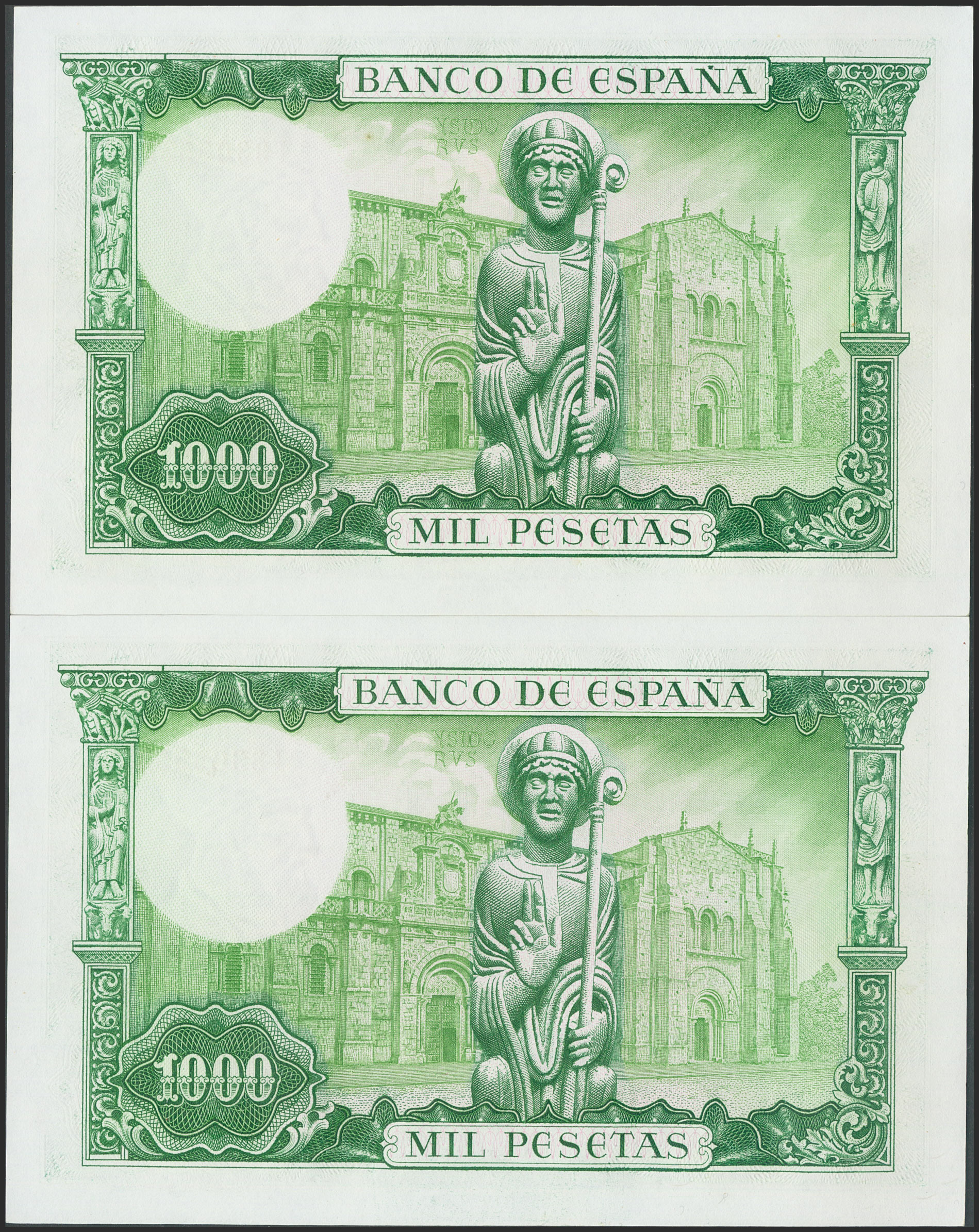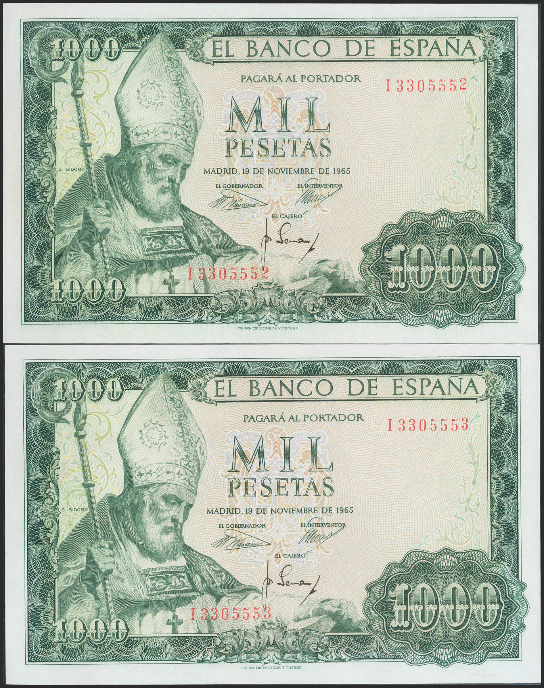 1000 Pesetas. 19 de Noviembre de 1965. Pareja correlativa. Serie I. (Edifil 2017: 471b). SC-.