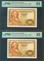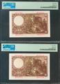 100 Pesetas. 2 de Mayo de 1948. Pareja correlativa. Serie D. (Edifil 2021: 456a, Pick: 137a). Rara en esta calidad. SC. Encapsulado PMG63, ambos.