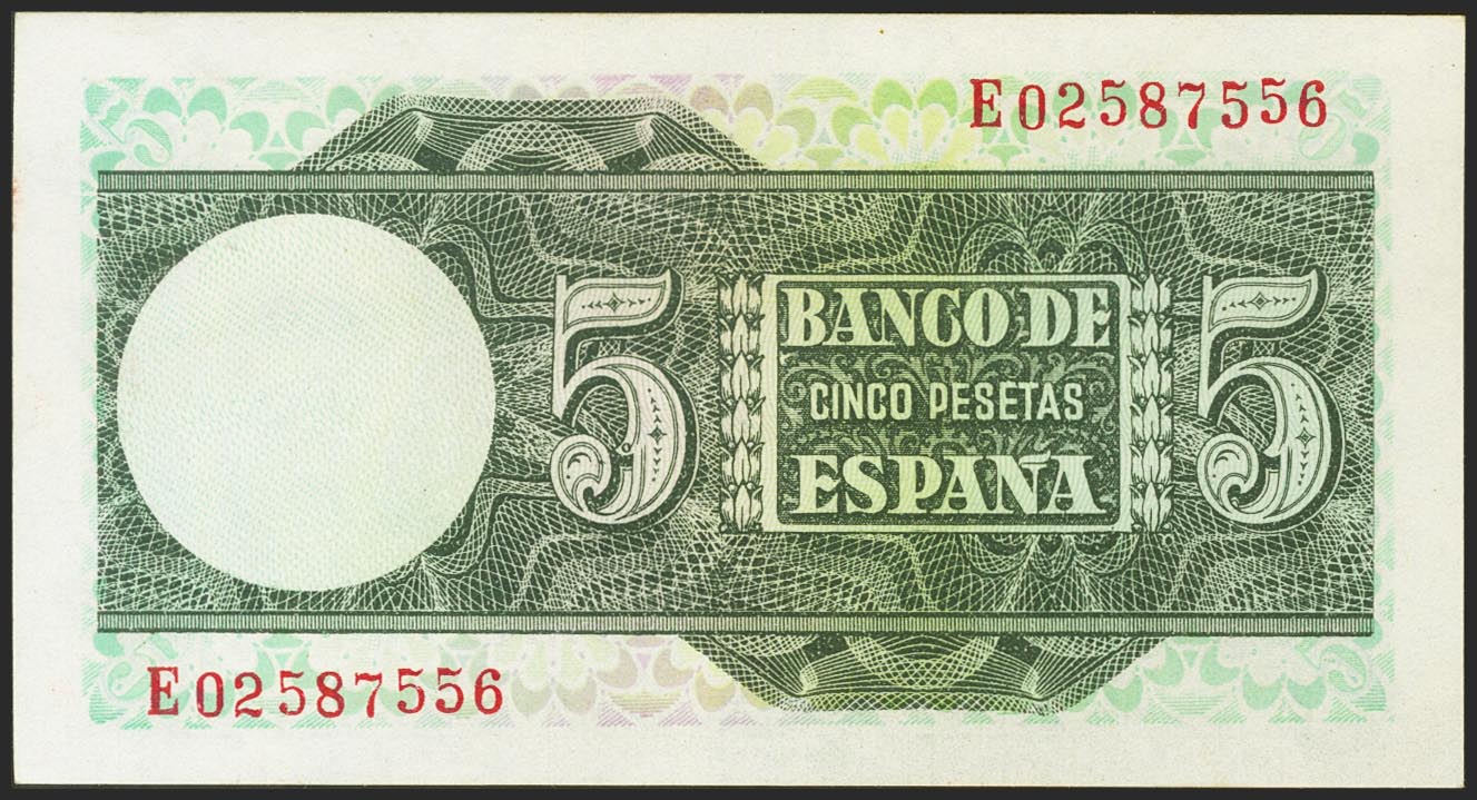 5 Pesetas. 5 de Marzo de 1948. Serie E. (Edifil 2021: 455a). Apresto original. SC.
