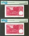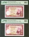 50 Pesetas. 31 de Diciembre de 1951. Pareja correlativa. Serie B. (EDifil 2021: 462a). Inusual en esta calidad, conservando todo su apresto original. SC. Encapsulados PMG66EPQ, ambos.