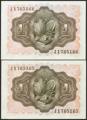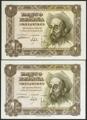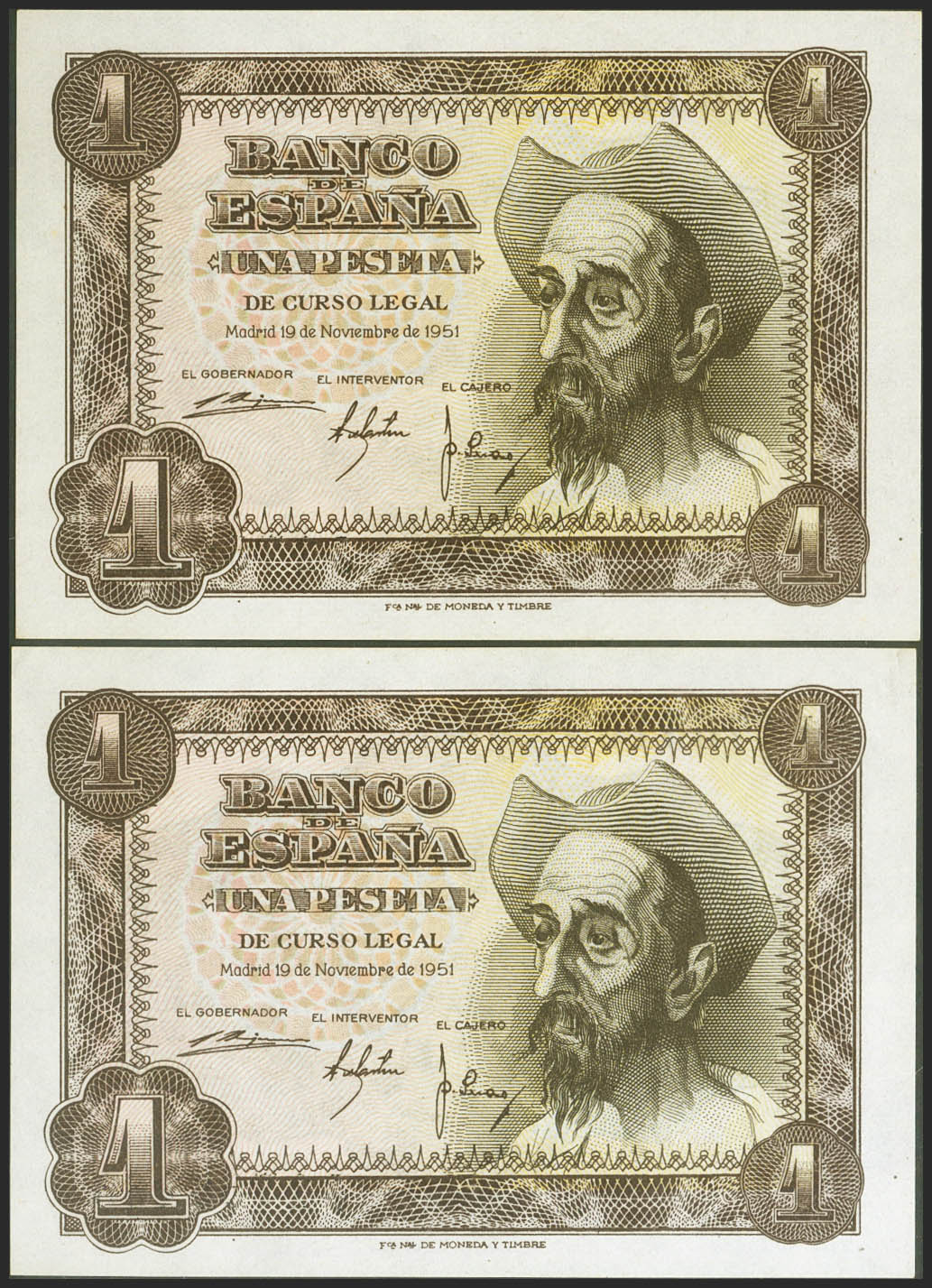 1 Peseta. 19 de Noviembre de 1951. Pareja correlativa. Serie J. (Edifil 2021: 461a). Apresto original. SC.