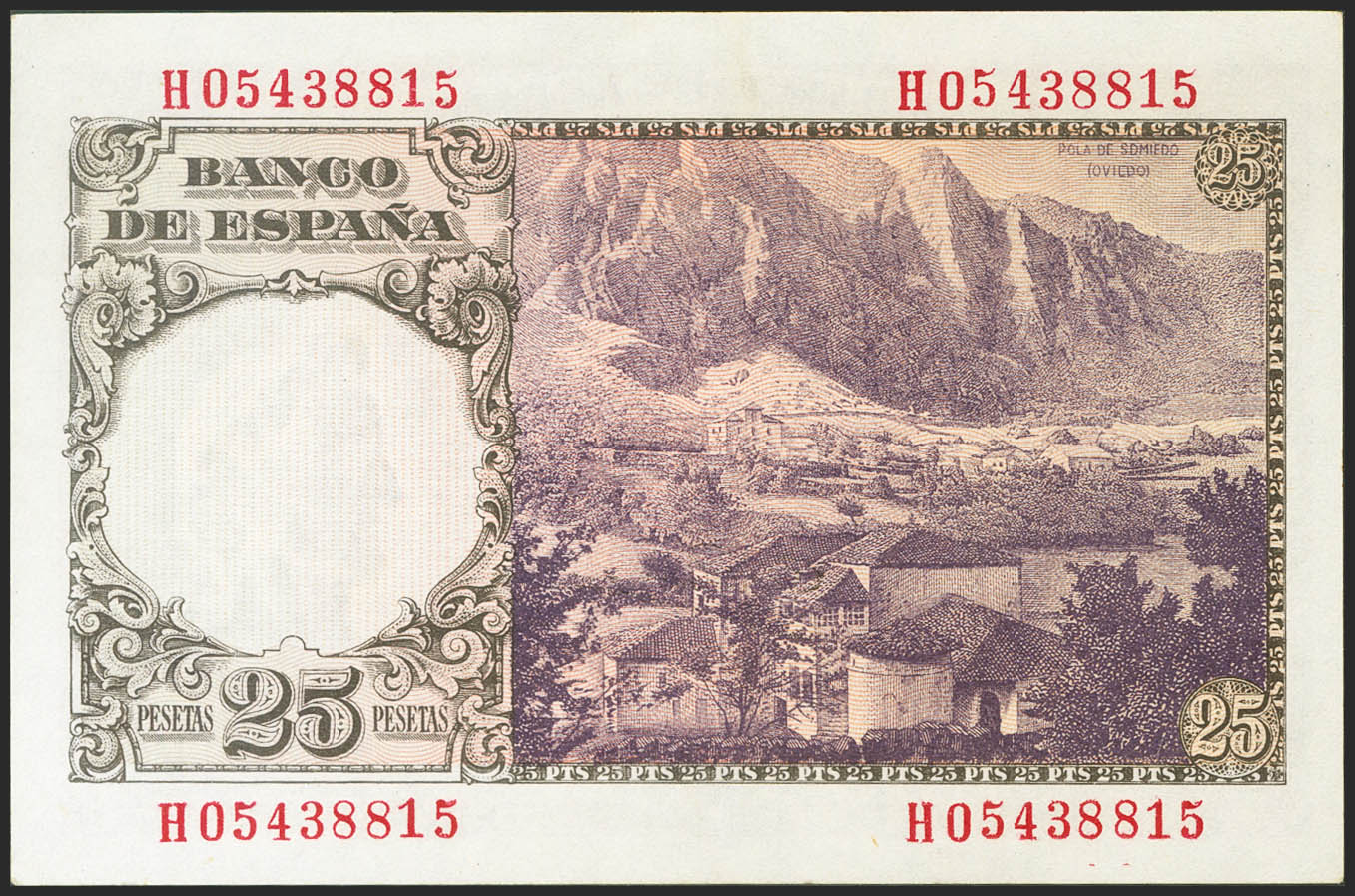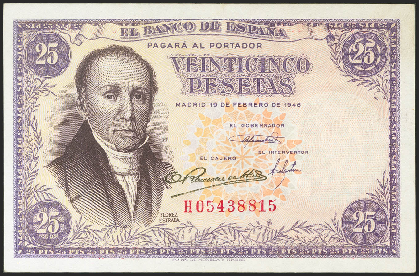 25 Pesetas. 19 de Febrero de 1946. Serie H. (Edifil 2021: 450a). Apresto original. SC-.