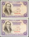 25 Pesetas. 19 de Febrero de 1946. Pareja correlativa, serie G. (Edifil 2021: 450a). Apresto original. SC-.