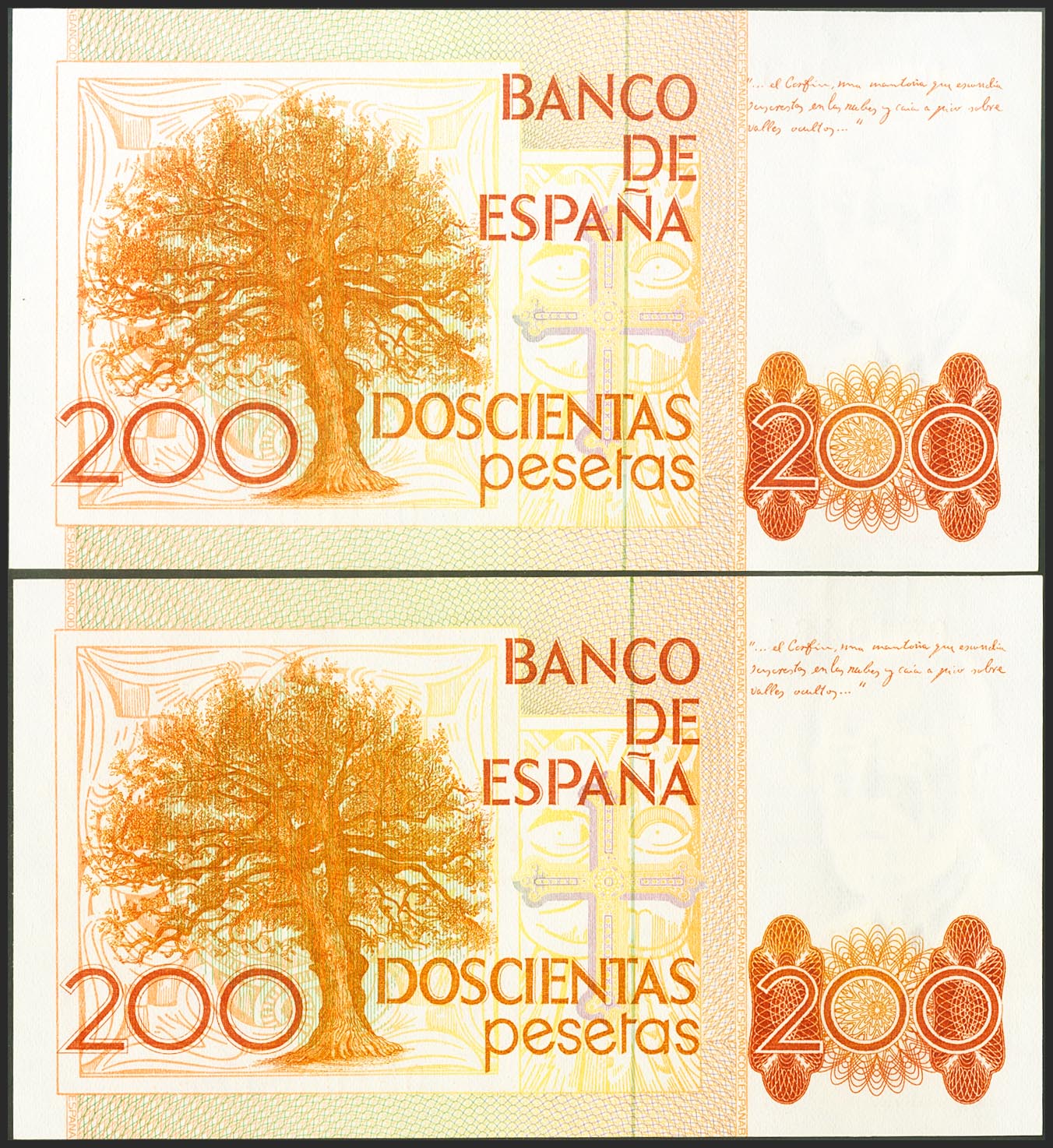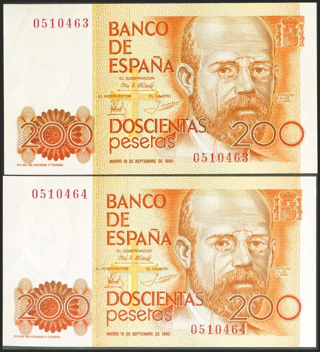 200 Pesetas. 16 de Septiembre de 1980. Pareja correlativa. Sin serie. (Edifil 2021: 480). SC-.