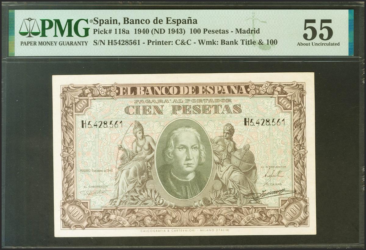 100 Pesetas. 9 de Enero de 1940. Serie H. (Edifil 2021: 438a, Pick: 118a). EBC+. Encapsulado PMG55.