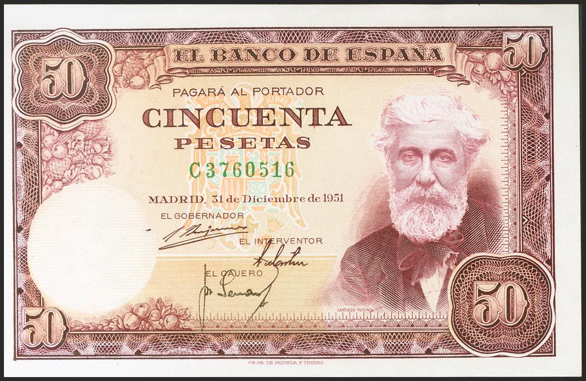 50 Pesetas. 31 de Diciembre de 1951. Serie C. (Edifil 2021: 462a). Apresto original. EBC++.