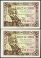 1 Peseta. 15 de Junio de 1945. Pareja correlativa. Serie E. (Edifil 2021: 448a). Apresto original. SC.