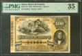 100 Pesetas. 1 de Enero de 1884. Sin serie. (Edifil 2021: 284, Pick: 26). Muy raro, especialmente sin reparaciones y en esta calidad. MBC+. Encapsulado PMG35.