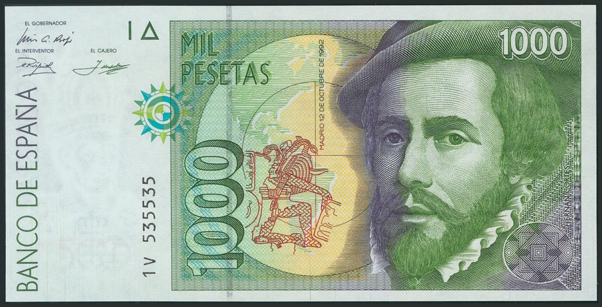 1000 Pesetas. 12 de Octubre de 1992. Tipo II. Serie 1V y numeración capicúa. (Edifil 2017: 483b). SC.