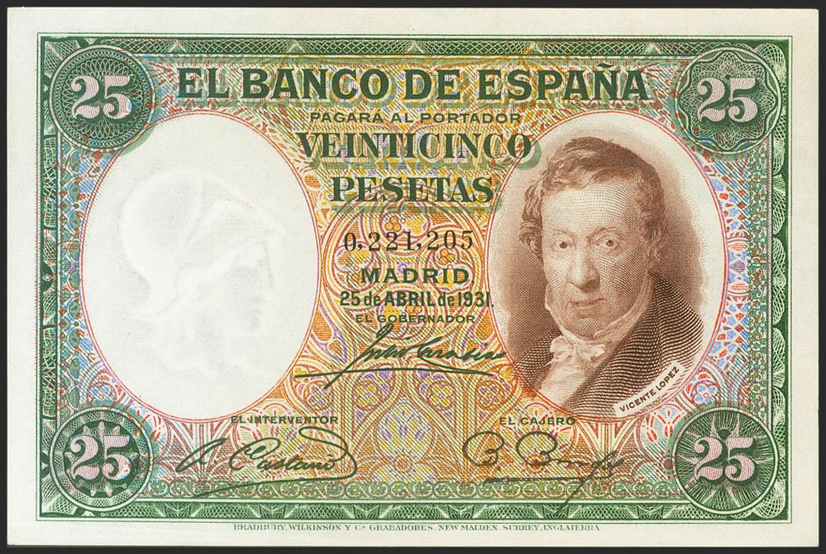 25 Pesetas. 25 de Abril de 1931. Sin serie. (Edifil 2021: 358). Inusual en esta calidad, conserva todo su apresto original. SC.