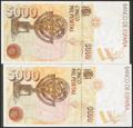 5000 Pesetas. 12 de Octubre de 1992. Pareja correlativa. Serie especial 9C. (Edifil 2021: 484b). Ondulación natural del proceso de fabricación (este es el único motivo de "quitarle" el SC). EBC+.