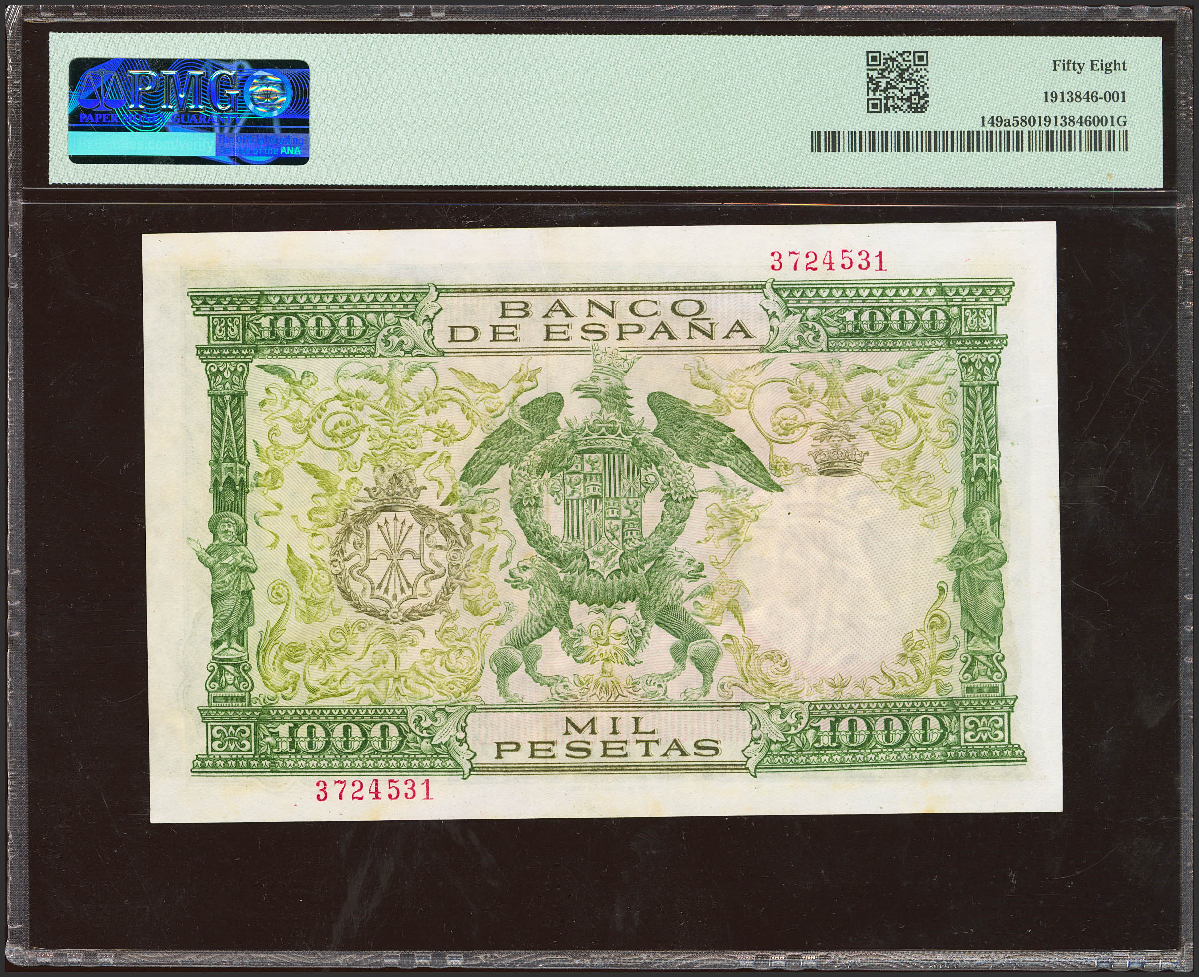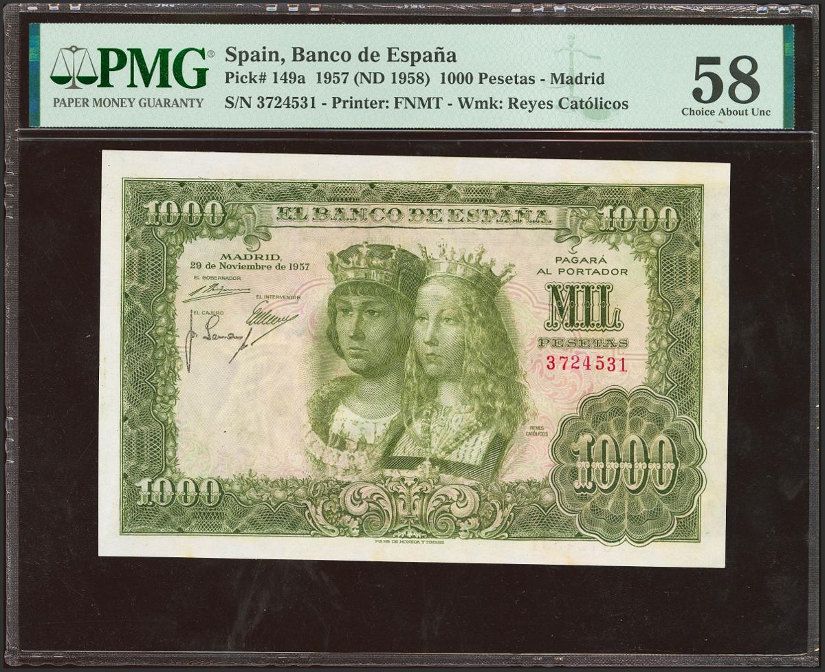 1000 Pesetas. 29 de Noviembre de 1957. Sin serie. (Edifil 2021: 469, Pick: 149a). Raro. EBC++. Encapsulado PMG58.