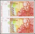 2000 Pesetas. 24 de Abril de 1992. Pareja correlativa. Serie especial 9C. (Edifil 2021: 482Ab). SC.