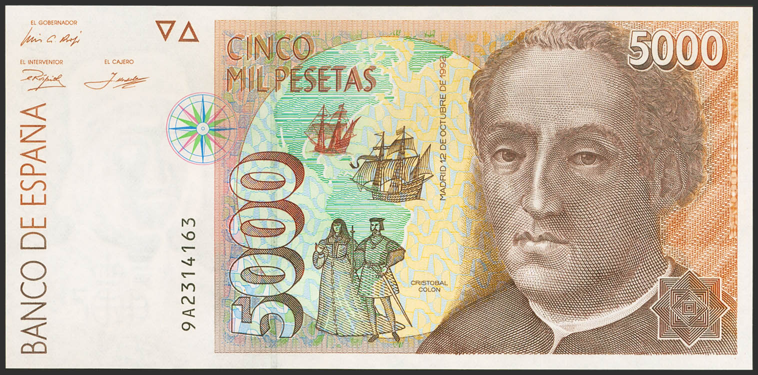 5000 Pesetas. 12 de Octubre de 1992. Serie especial 9A. (Edifil 2021: 484b). SC.