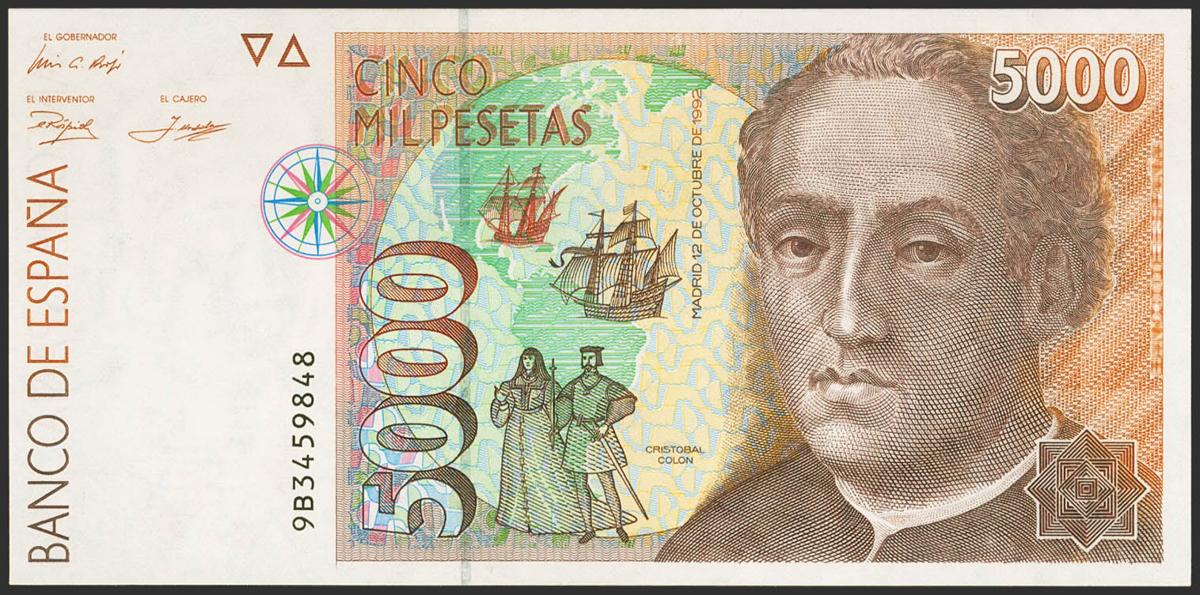5000 Pesetas. 12 de Octubre de 1992. Serie especial 9B. (Edifil 2021: 484b). SC-.