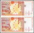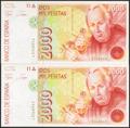 2000 Pesetas. 24 de Abril de 1992. Pareja correlativa. Serie L. (Edifil 2023: 482a). SC.