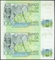 1000 Pesetas. 23 de Octubre de 1979. Pareja correlativa. Serie P-F. (Edifil 2023: 477a). SC.