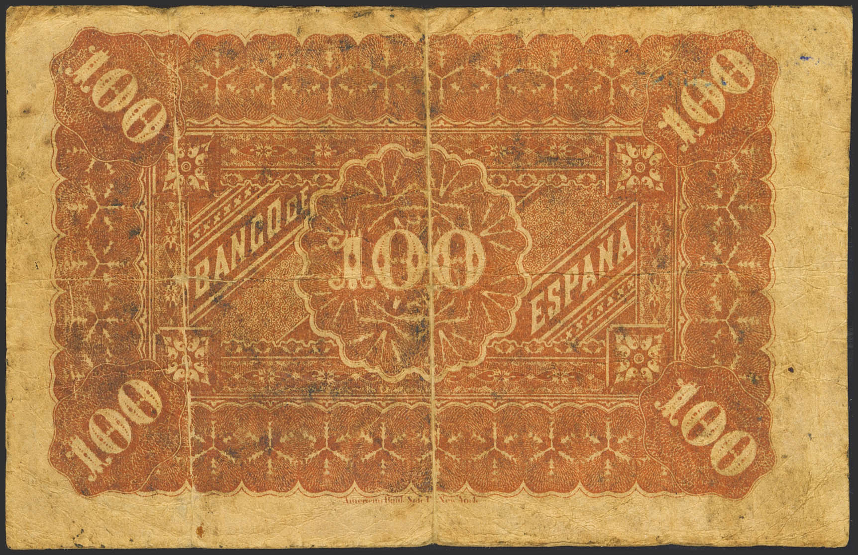 100 Pesetas. 1 de Abril de 1884. Falso de Epoca. Sin serie. (Edifil 2023: 284F). RarÃsimo. MBC-.