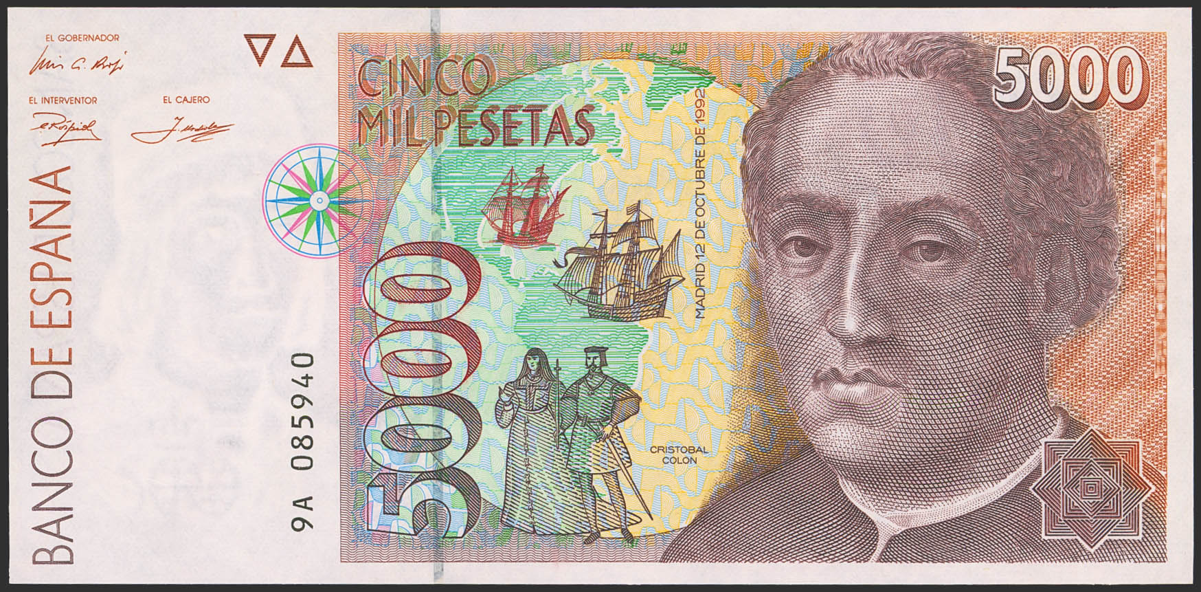 5000 Pesetas. 12 de Octubre de 1992. Serie especial 9A. (Edifil 2023: 484b, Pick: 165*). SC-.