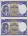 100 Pesetas. 25 de Abril de 1931. Pareja correlativa. Sin serie. (Edifil 2017: 360). Conserva todo su apresto original. SC-.