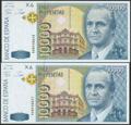 10000 Pesetas. 12 de Octubre de 1992. Pareja correlativa. Serie especial 9A. (Edifil 2021: 485b). Ondulación natural del proceso de fabricación (este es el único motivo de "quitarle" el SC). EBC+.