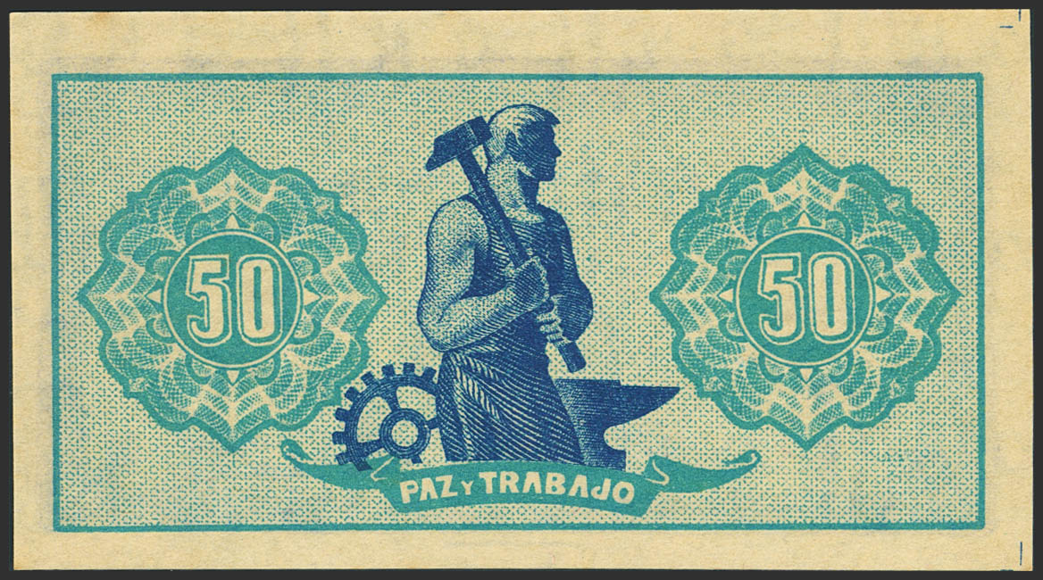 50 Céntimos. 1937. Asturias y León. Sin serie y numeración baja (Nº000403). (Edifil 2023: 396). Muy raro en esta calidad, apresto original. SC-.