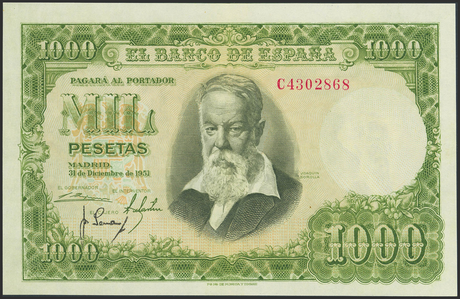 1000 Pesetas. 31 de Diciembre de 1951. Serie C, última serie emitida. (Edifil 2023: 463b). EBC.