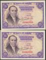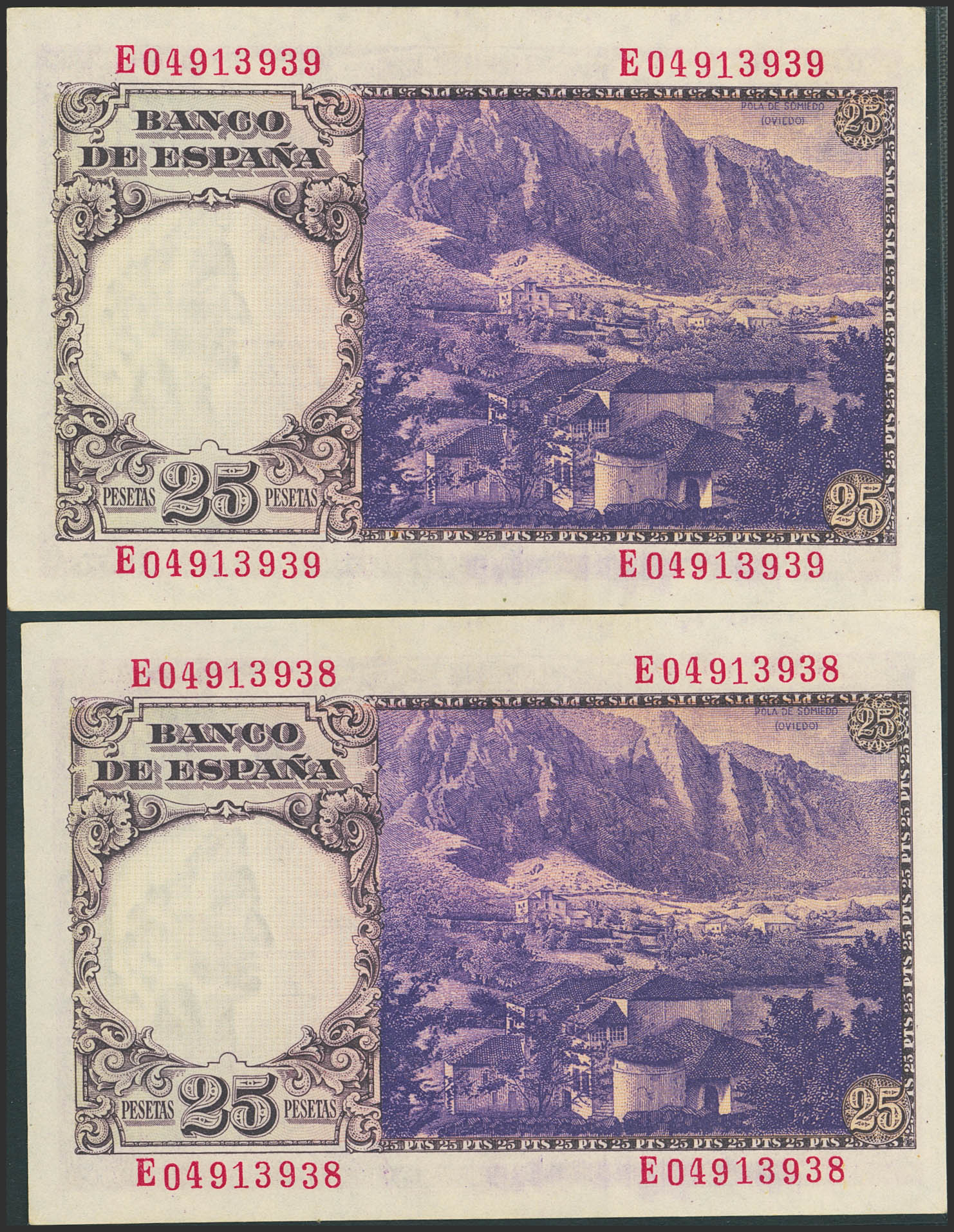 25 Pesetas. 19 de Febrero de 1946. Pareja correlativa. Serie E. (Edifil 2023: 450a). Apresto original. SC.