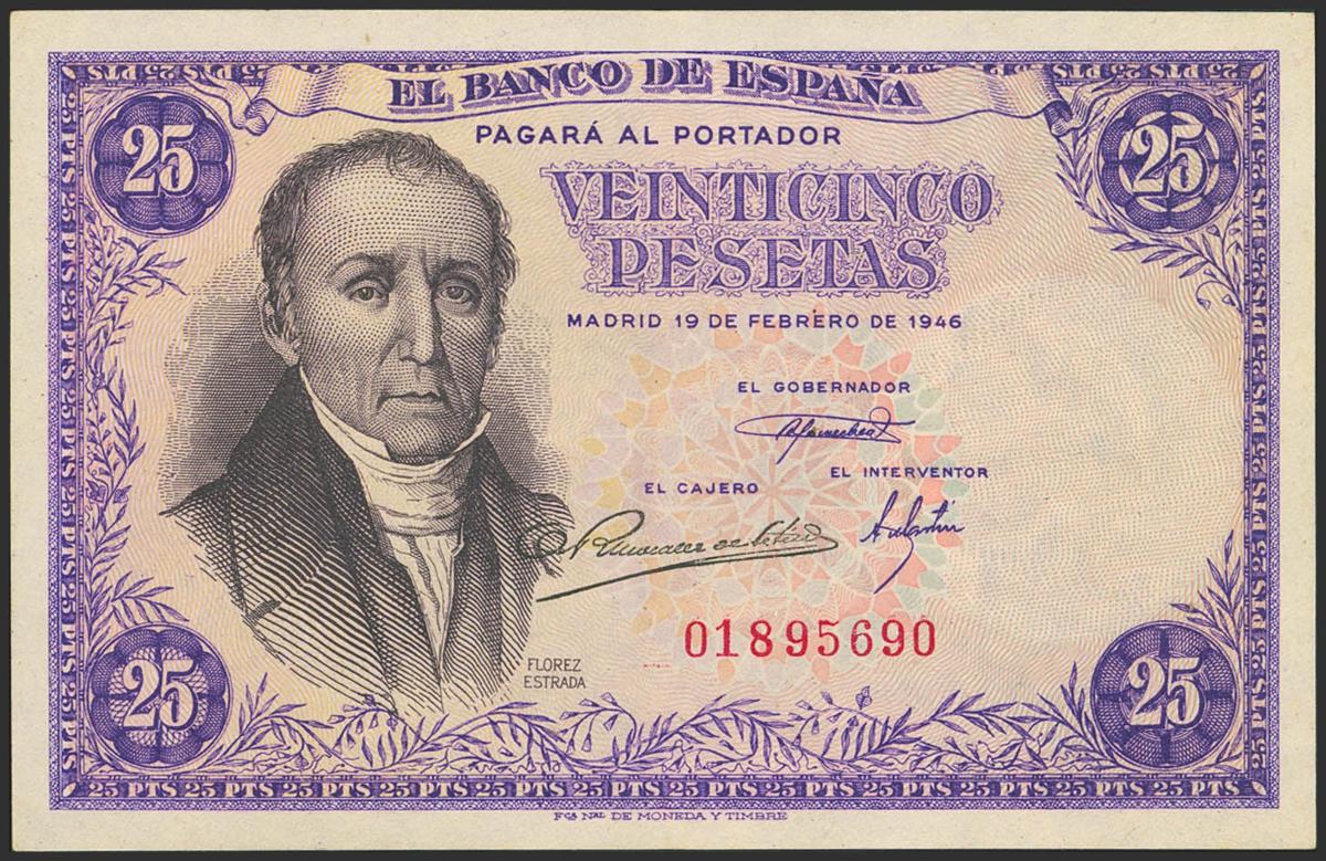 25 Pesetas. 19 de Febrero de 1949. Sin serie. (Edifil 2021: 450). EBC+.