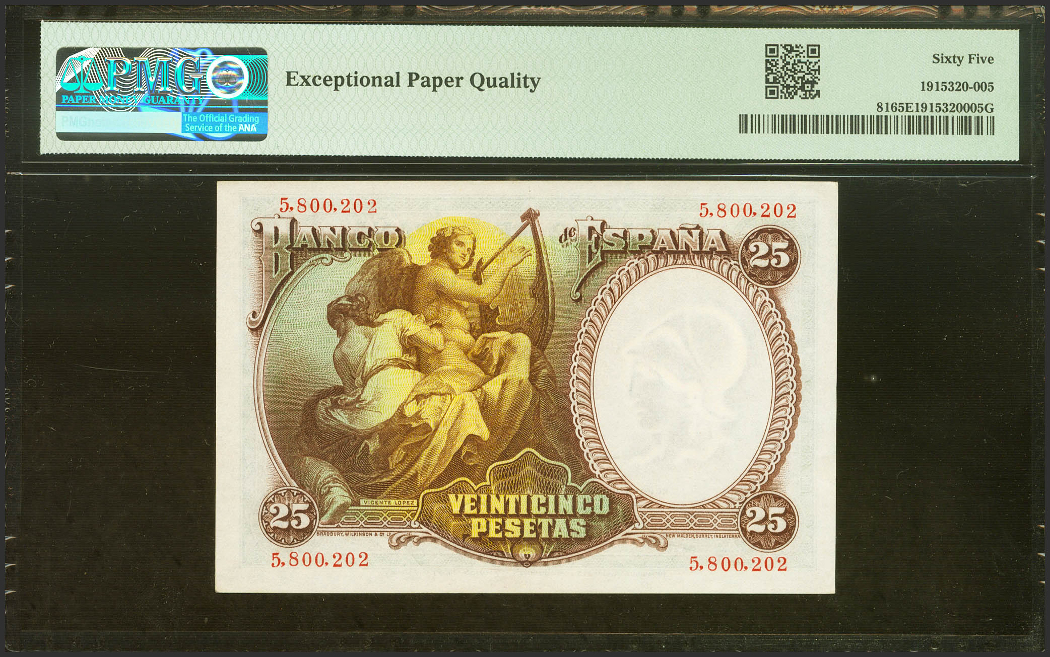 25 Pesetas. 25 de Abril de 1931. Sin serie. (Edifil 2023: 358, Pick: 81). Inusual en esta excepcional calidad, apresto original. SC. Encapsulado PMG65EPQ.