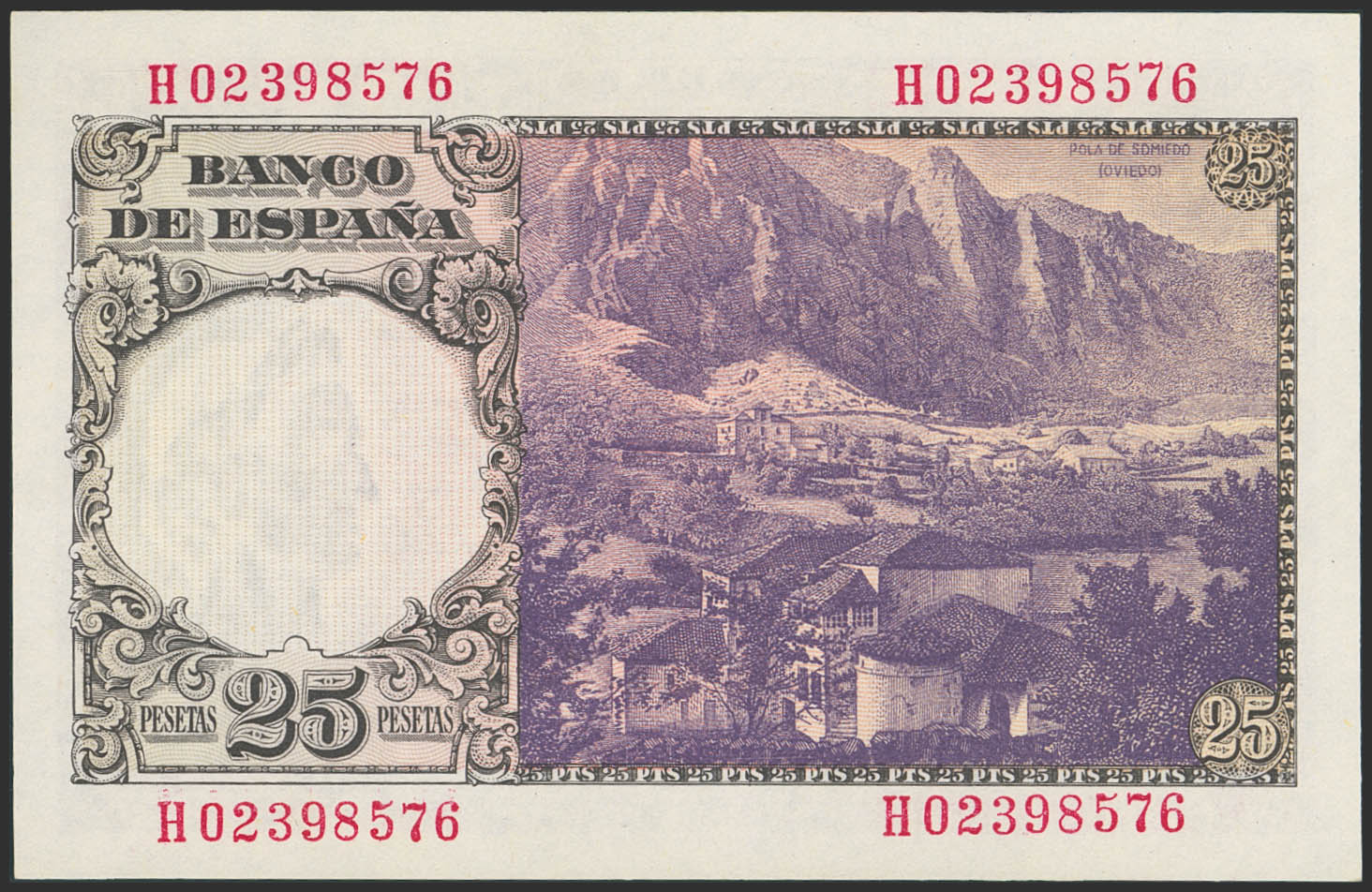 25 Pesetas. 19 de Febrero de 1946. Serie H. (Edifil 2023: 450a). Apresto original. SC.