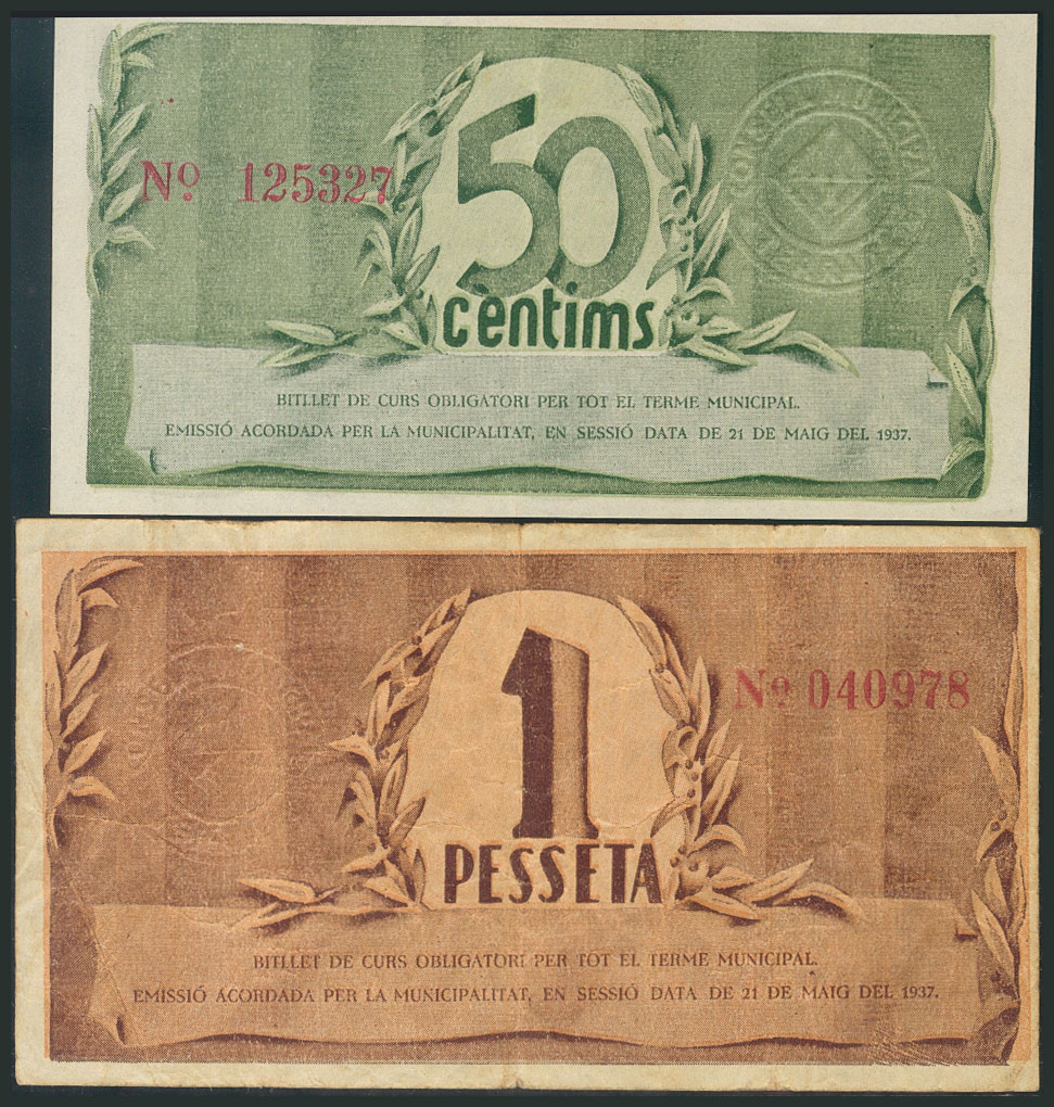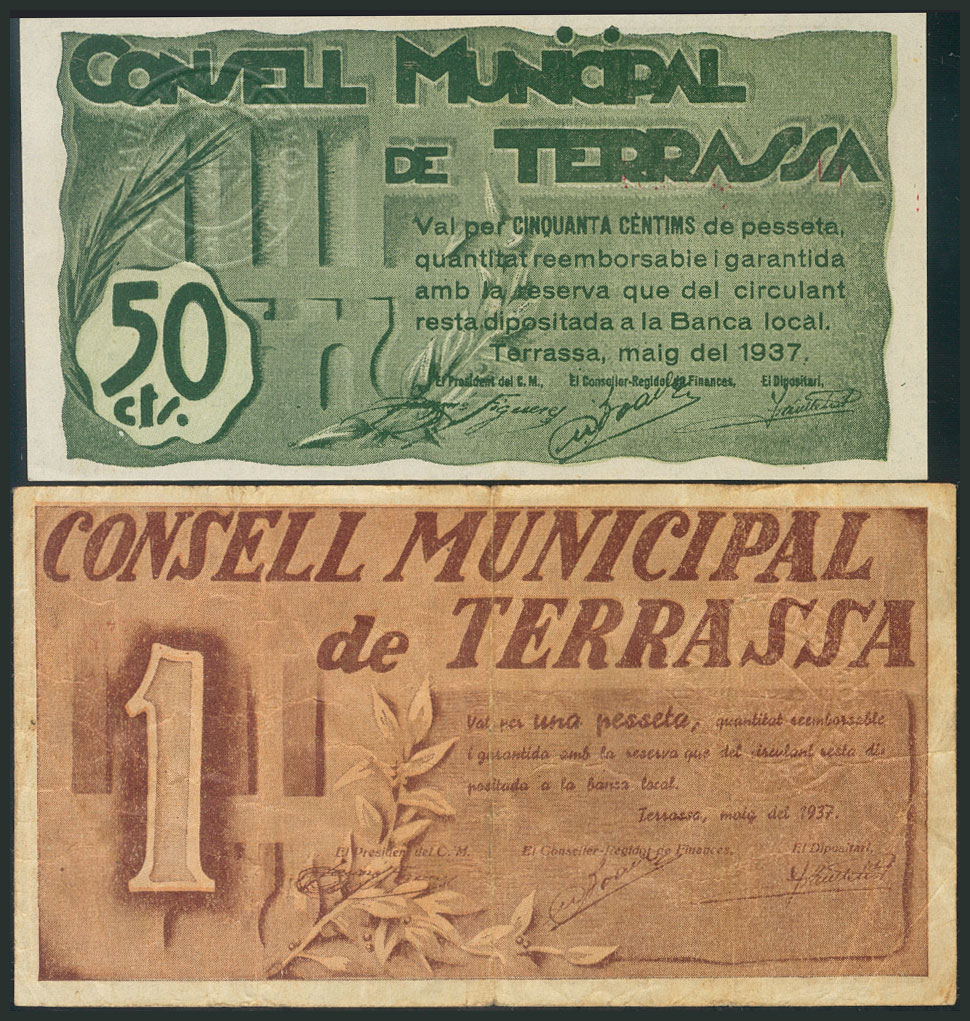 TERRASSA (BARCELONA). 50 Céntimos y 1 Peseta. 21 de Mayo de 1937. (González: 10132/33). MBC.