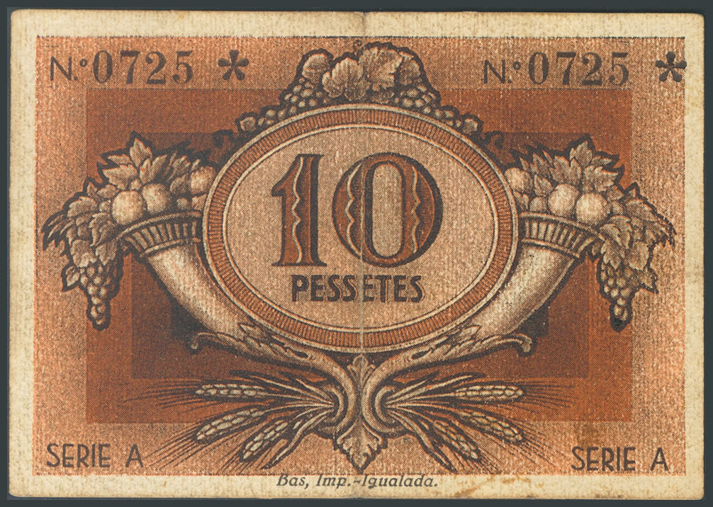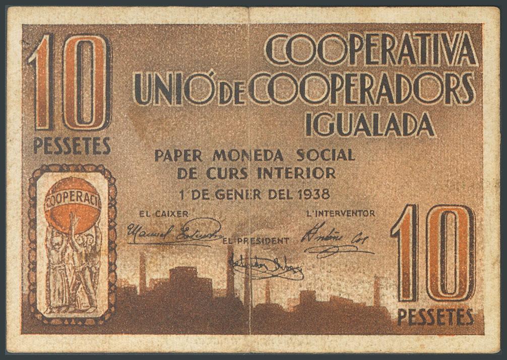 IGUALADA (BARCELONA). 10 Pesetas. 1 de Enero de 1938. Serie A. (González: 8256). MBC+.
