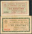CREIXELL DE MAR (TARRAGONA). 25 Céntimos y 50 Céntimos. 10 de Junio de 1937. (González: 7700, 7701). Raros. MBC.