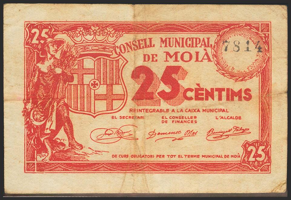 MOIA (BARCELONA). 25 Céntimos. (1937ca). (González: 8689). MBC.
