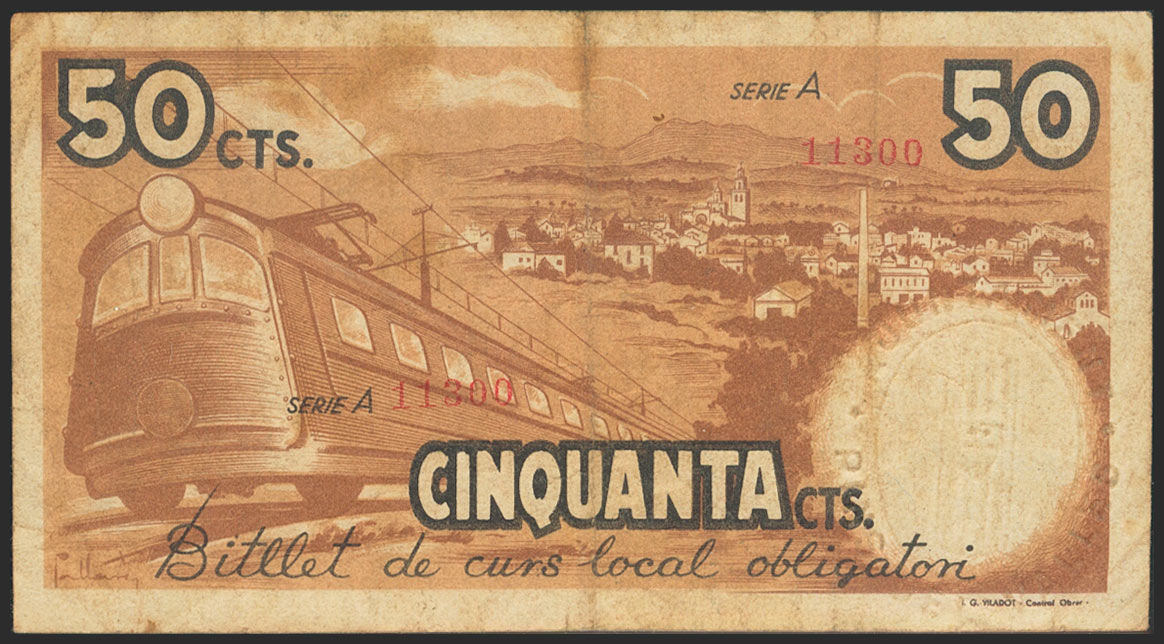 PINS DEL VALLES (BARCELONA). 50 Céntimos. 12 de Mayo de 1937. Serie A. (González: 9245). MBC.