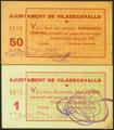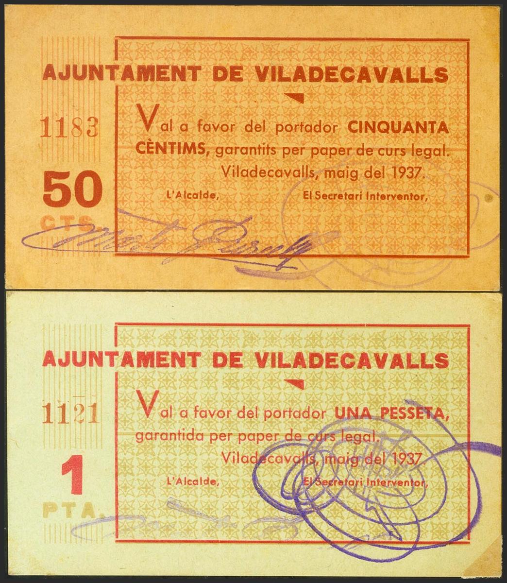 VILADECAVALLS (BARCELONA). 50 Céntimos y 1 Peseta. Mayo 1937. (González: 10693/94). Rara serie completa. EBC.