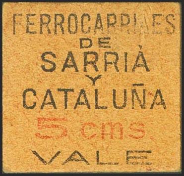 BARCELONA. 5 Céntimos. (1937ca). Ferrocarriles de Sarriá y Cataluña. (González: 6731). Raro. EBC.
