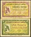 CORBERA DE LLOBREGAT (BARCELONA). 50 Céntimos y 1 Peseta. 6 de Junio de 1937. (González: 7672/73). Inusual serie completa. MBC+.