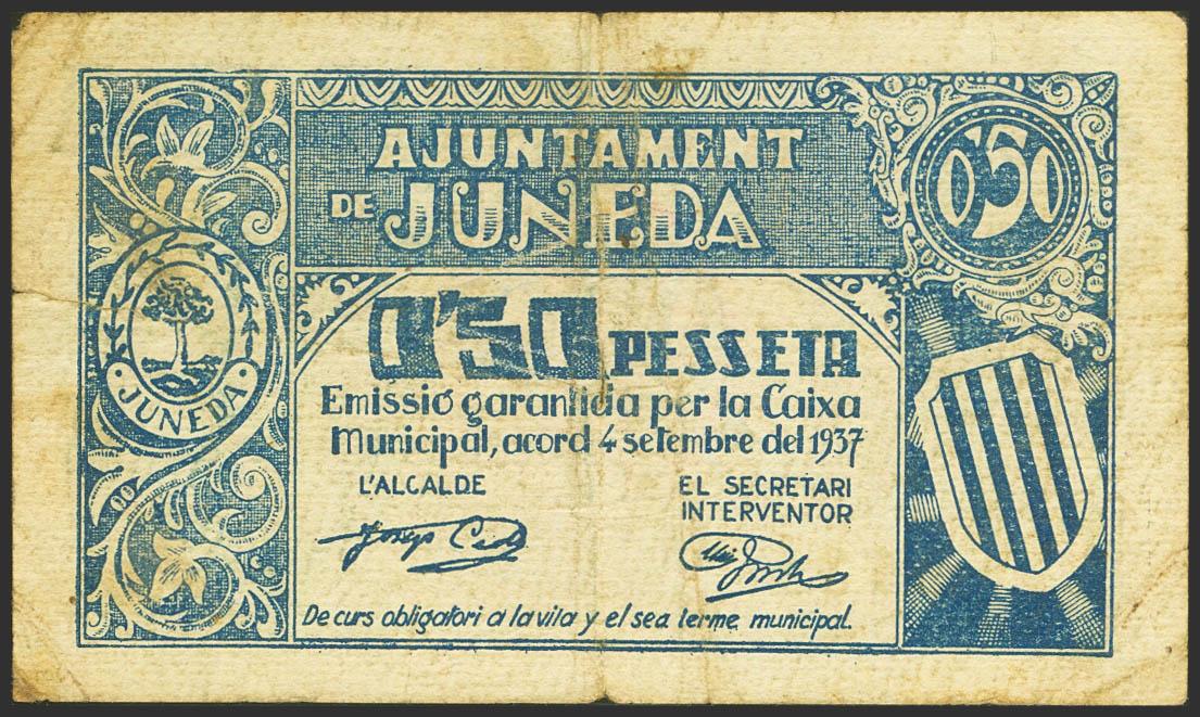 JUNEDA (LERIDA). 50 Céntimos. 4 de Septiembre de 1937. (González: 8297). Inusual. MBC-.