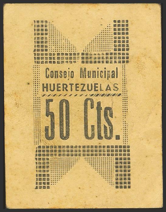 HUERTEZUELAS (CIUDAD REAL). 50 Céntimos. (1938ca). (González: 2895). Muy raro. MBC+.