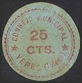 YEPES (TOLEDO). 25 Céntimos. (1937ca). (González: no mencionado). Rarísimo, para hacernos idea de la rareza de este billete, en el catálogo de González sólo se mencionan los valores de 10 cts y 15 cts, muy probablemente este valor sea inédito hasta a la fecha. EBC-.