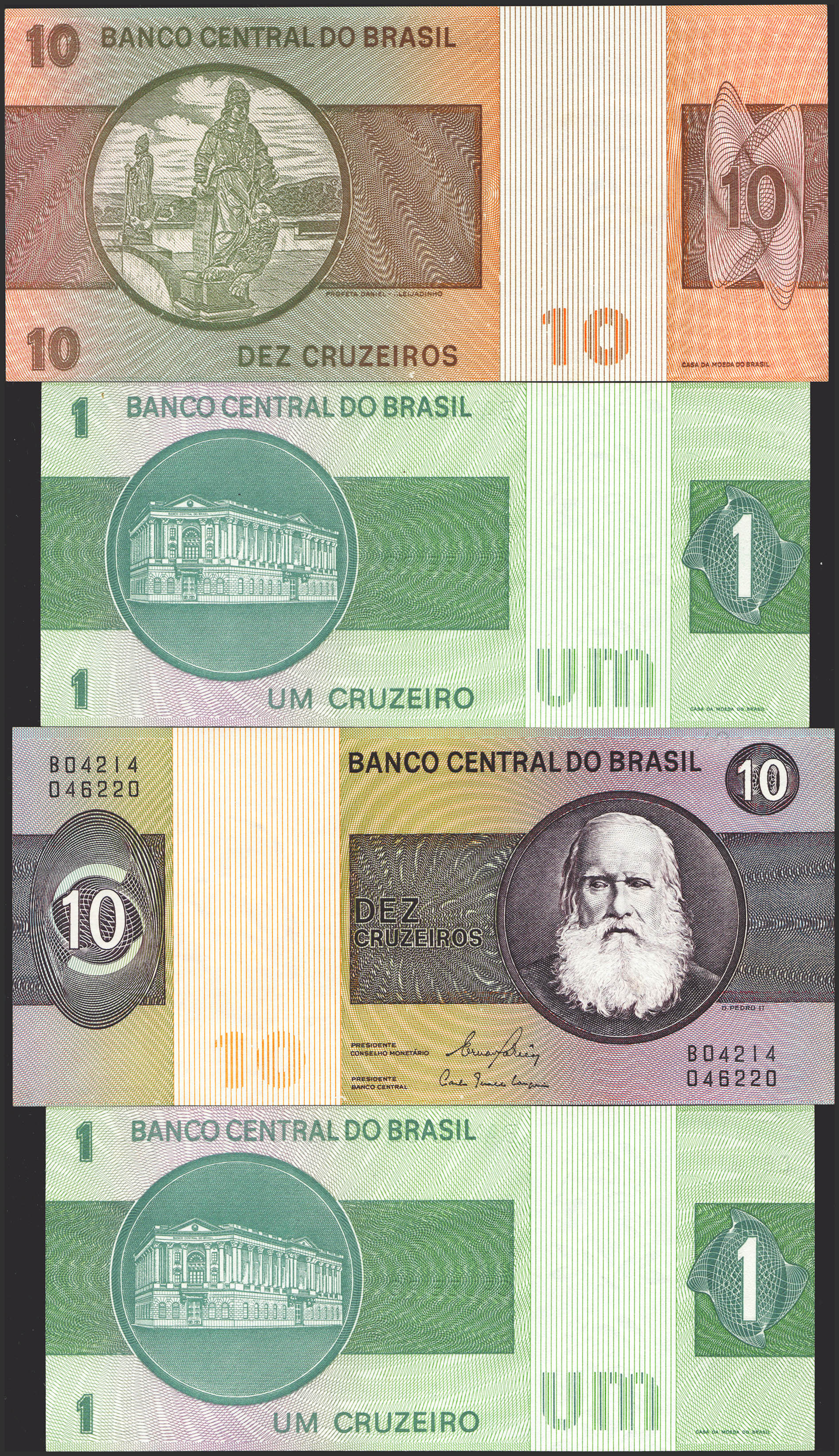 Set of 2 Brazilian correlative pairs banknotes of different issues. TO EXAMINE.