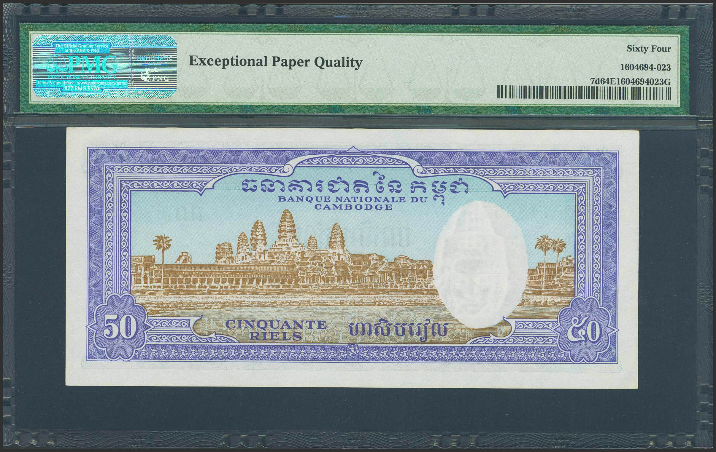 CAMBODIA. 50 Riels. (1972ca). (Pick: 7d). PMG64EPQ.