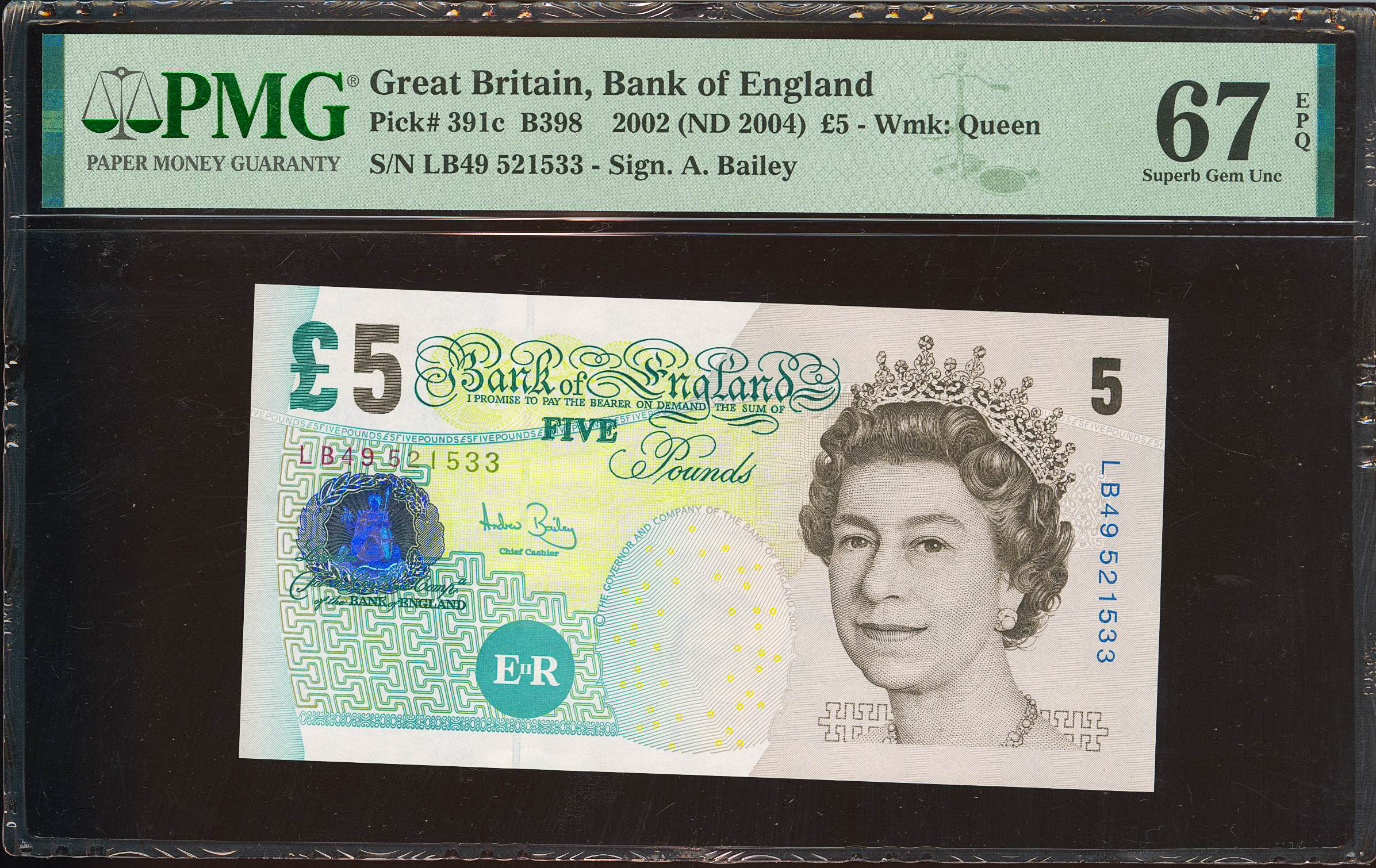 GREAT BRITAIN. 5 Pounds. (2004ca). (Pick: 391c). PMG67EPQ.